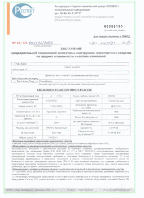 1. Экспертиза о возможности внесения изменений в конструкцию ТС.